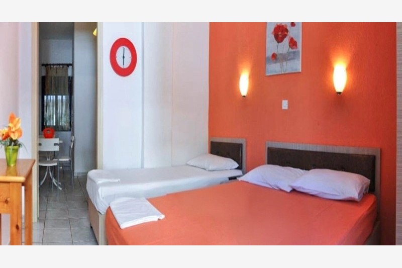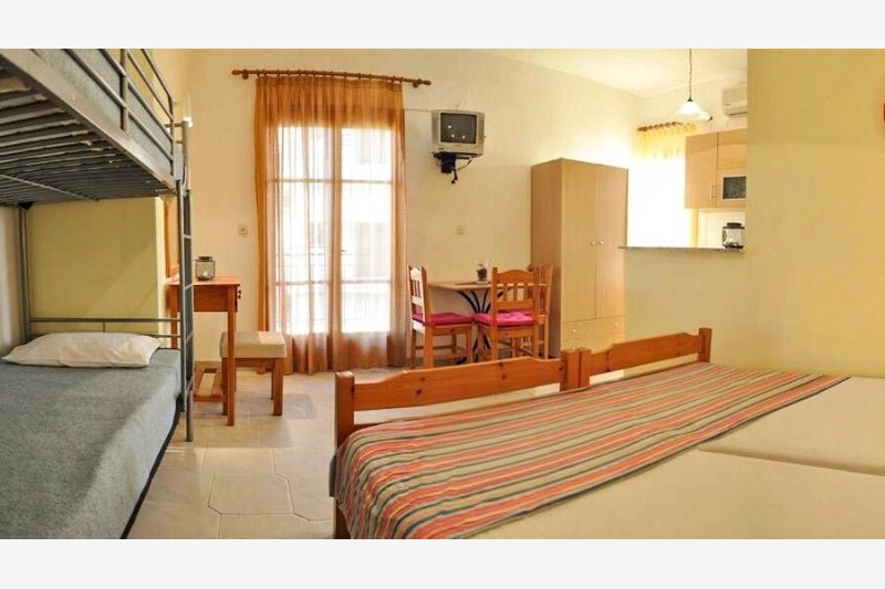 Studiji i apartmani poseduju osnovno opremljenu kuhinju, kupatilo, terasu i TV. Korišćenje klima uređaja je uključeno u cenu najma apartmana.